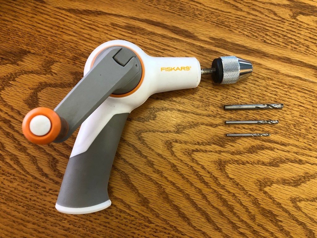 While we do carry a small electric hand drill in the trailer; I have found the Fiskars Precision Hand Drill to be great. This drill allows for control at much slower rates making it easier to use, especially on smaller projects. With a sharp bit, it is very satisfying how quickly this drill works on wood and dry wall.