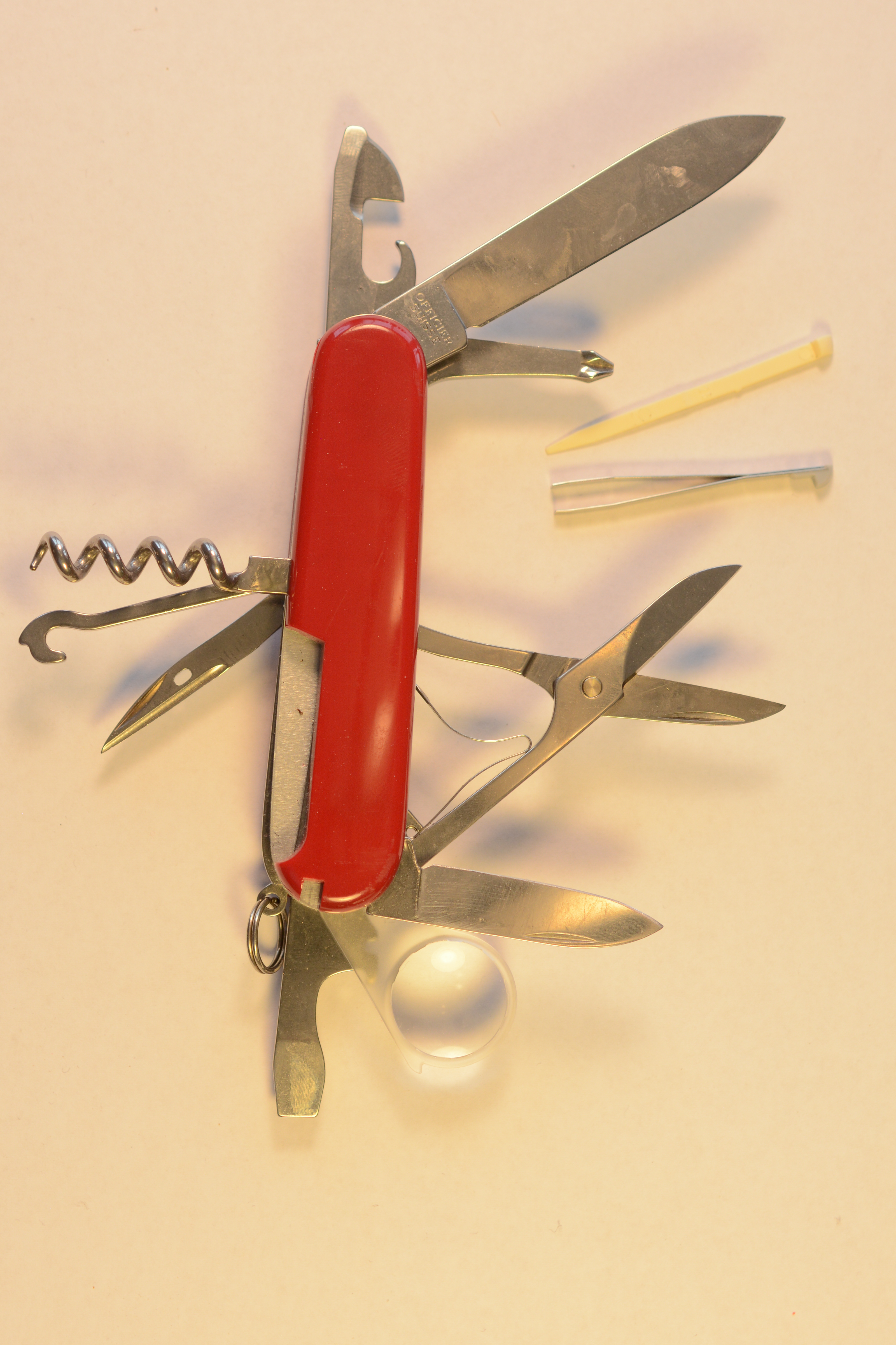 There are other tools included on this model that I have used occasionally. The magnifying glass comes in handy for looking at fine print or small objects, although it would work better if it had the correct magnification to start a fire in an emergency situation. The awl is useful for piecing materials and repairing equipment.