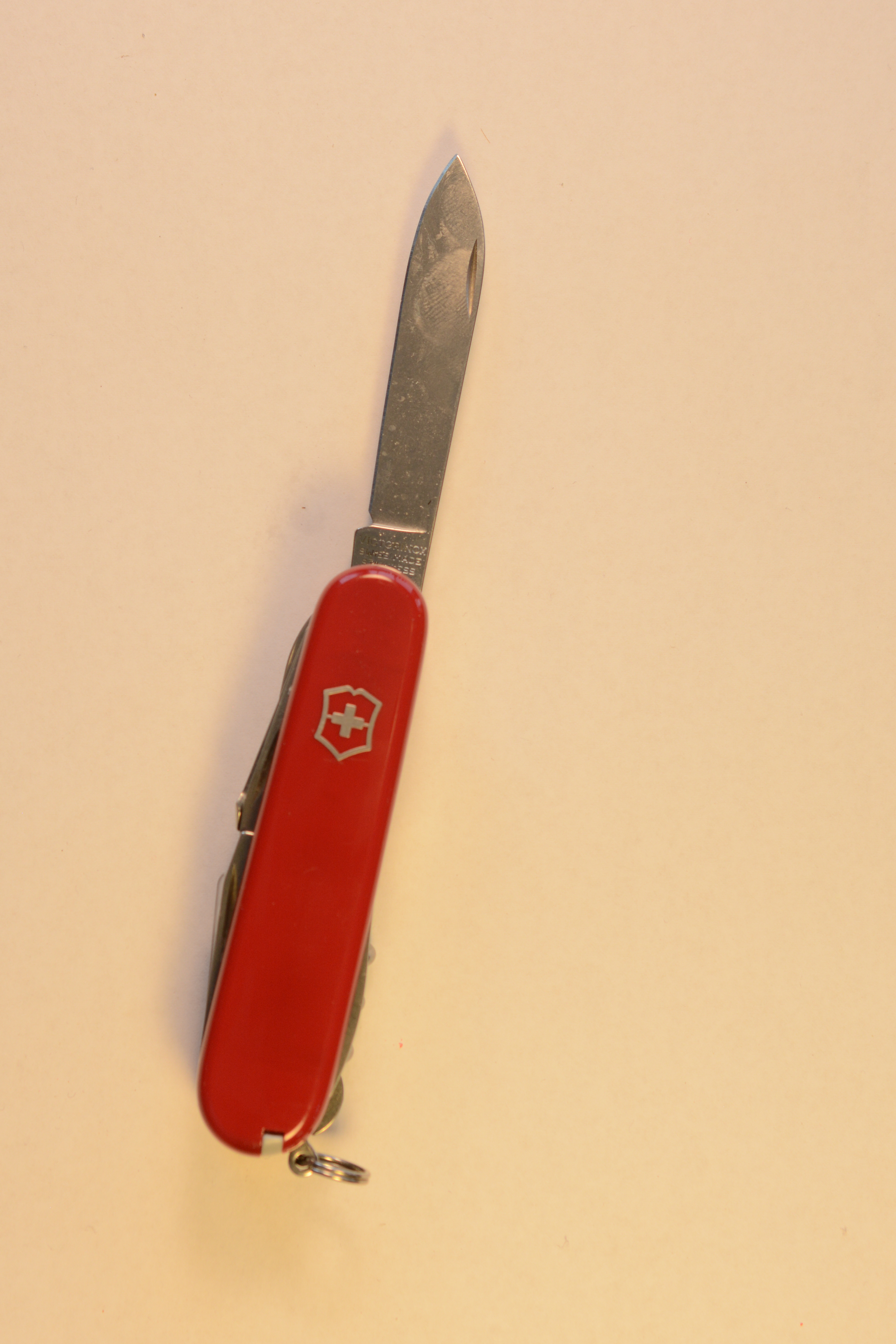 As seen above, this model also includes the toothpick and the tweezers. At first I really liked the toothpick, however over time the questionable cleanliness of the toothpick made me less willing to use it (at least without washing it first). While less likely to use the toothpick, the tweezers have come in handy more than once to remove splinters and work with small items.