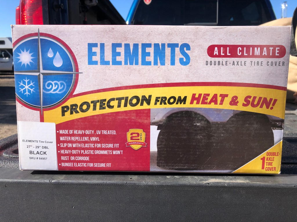 We purchased Elements All Climate Double-Axle tire covers prior to our first winter from Camping World. The covers have been holding up very well. If there is interest in further reducing the heat exposure of the tires, a white cover may be preferable to the black covers we purchased. For convenience here is a link to Amazon’s Choice (2019) tire covers: ADCO 3923 White Double Axle Tyre Gard Wheel Cover.