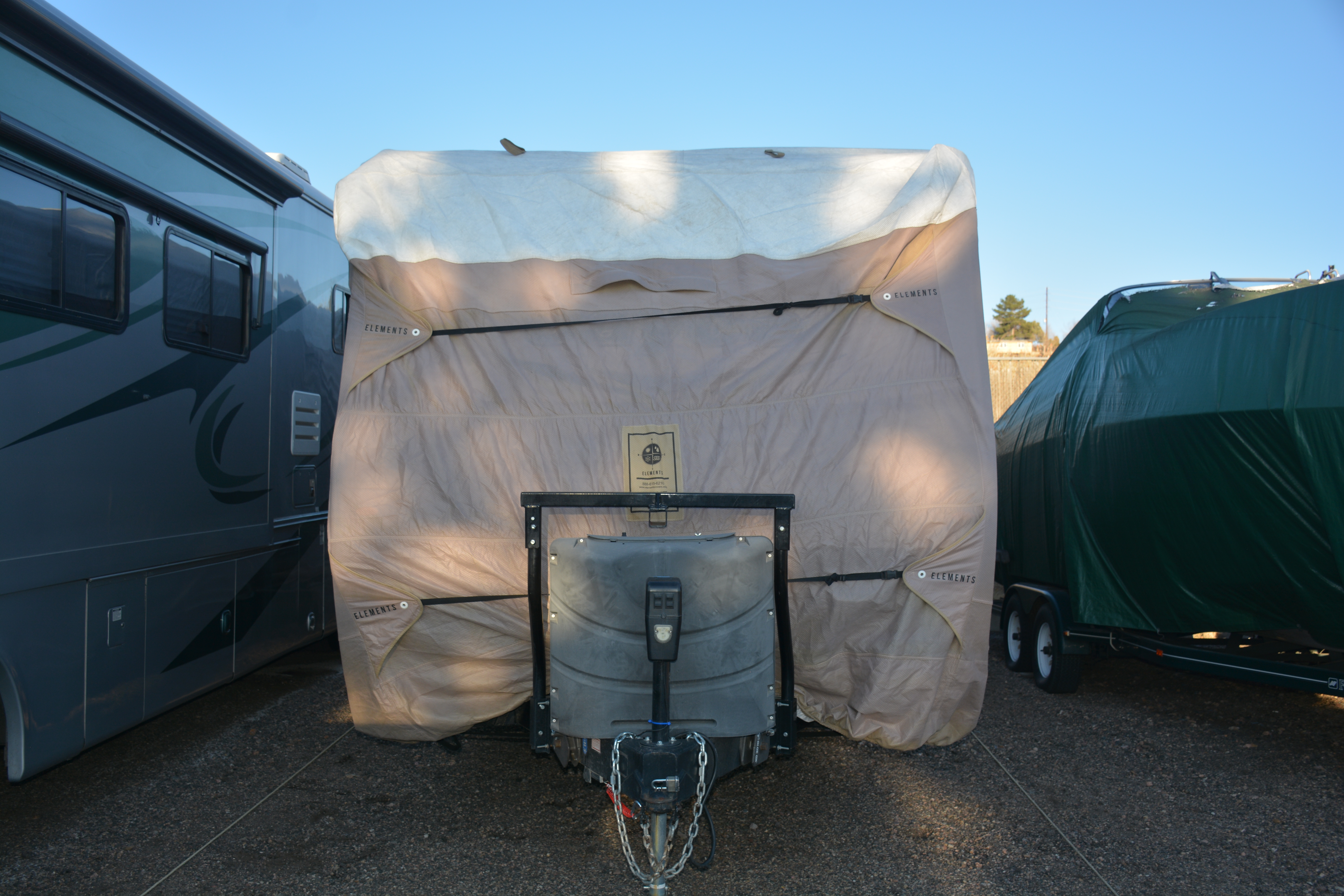Since the trailer was in for service I was able to measure it while looking at the covers. I spent at least an hour measuring the trailer from rear bumper, including the spare tire, to the front just behind the propane tanks multiple times while hemming and hawing the length difference between two trailer covers. I didn’t want the trailer cover to be too big because we get strong winds in the winter, but if it was too small I would be stuck trying to offload a “used” cover. Finally I decided on the Elements 28’7″ to 31’6″ trailer cover, I went with the cover right at the length of my trailer and it has worked out well.