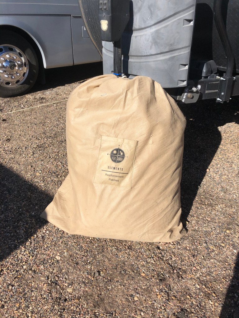 The Elements trailer cover also comes with patches that can be used to repair small tears in the cover or re-enforce high abrasion areas on the trailer. These have come in handy on most of the corners, especially where the drain spouts are.